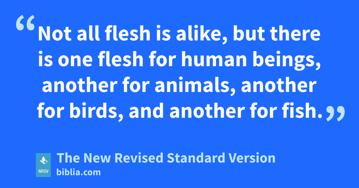 Not all flesh is alike, but there is one flesh for human beings, another for animals, another for birds, and another for fish.