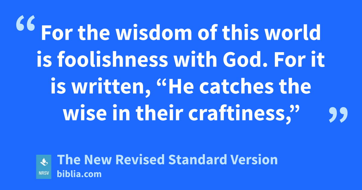 For the wisdom of this world is foolishness with God. For it is written, “He catches the wise in their craftiness,”