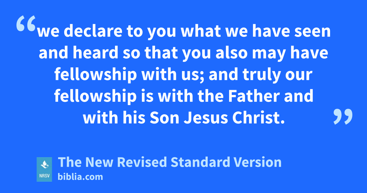 we declare to you what we have seen and heard so that you also may have fellowship with us; and truly our fellowship is with the Father and with his Son Jesus Christ.