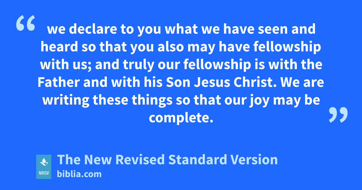 we declare to you what we have seen and heard so that you also may have fellowship with us; and truly our fellowship is with the Father and with his Son Jesus Christ. We are writing these things so that our joy may be complete.
