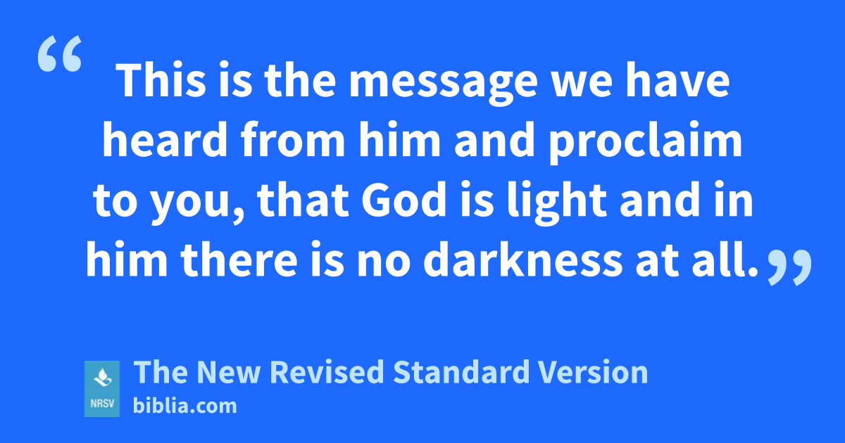 This is the message we have heard from him and proclaim to you, that God is light and in him there is no darkness at all.