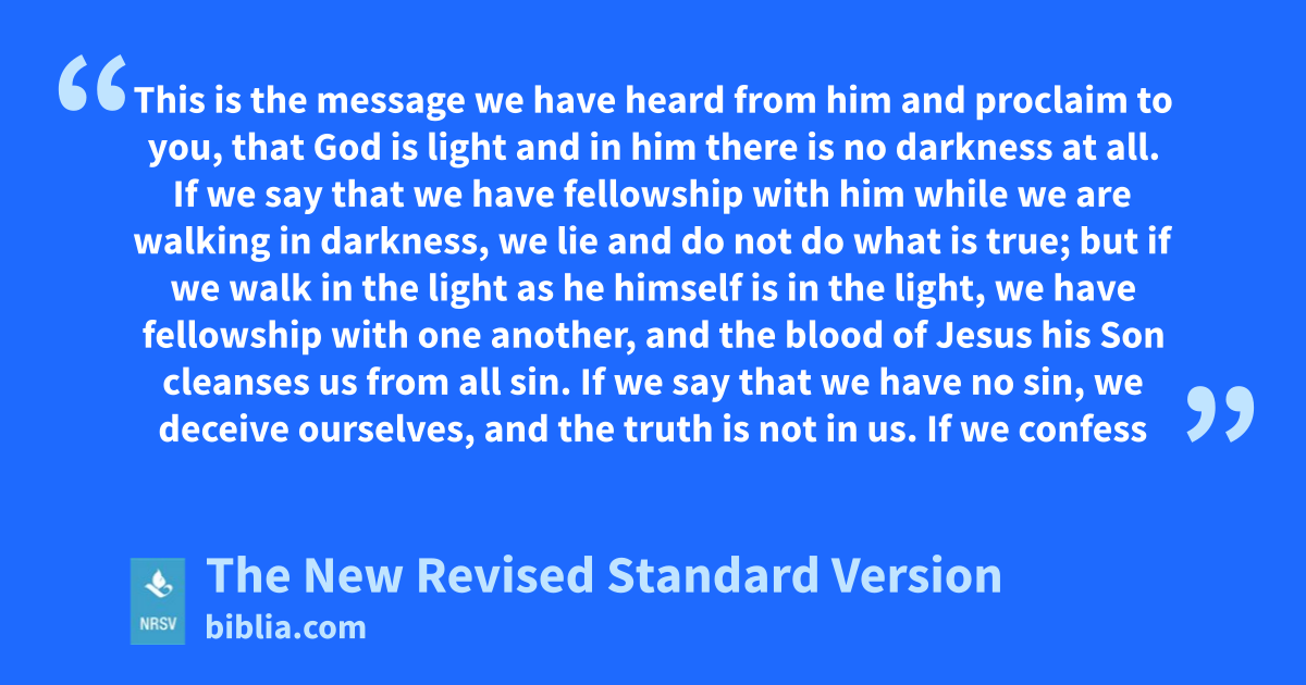 This is the message we have heard from him and proclaim to you, that God is light and in him there is no darkness at all. If we say that we have fellowship with him while we are walking in darkness, we lie and do not do what is true; but if we walk in the light as he himself is in the light, we have fellowship with one another, and the blood of Jesus his Son cleanses us from all sin. If we say that we have no sin, we deceive ourselves, and the truth is not in us. If we confess