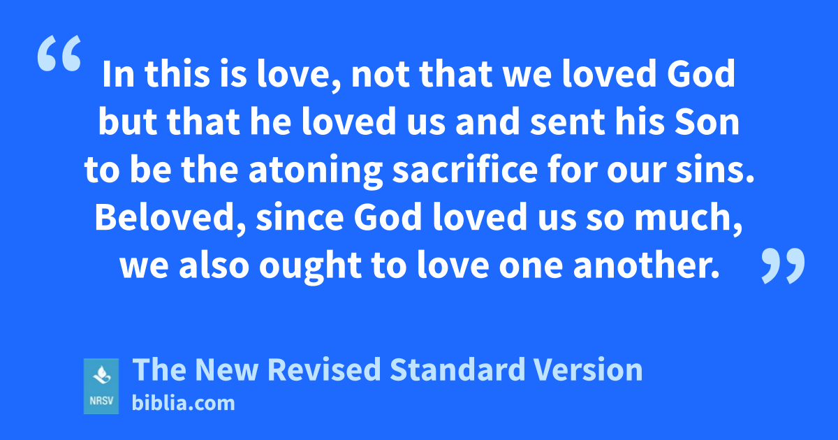 In this is love, not that we loved God but that he loved us and sent his Son to be the atoning sacrifice for our sins. Beloved, since God loved us so much, we also ought to love one another.