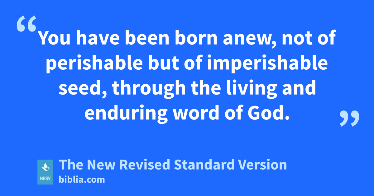 You have been born anew, not of perishable but of imperishable seed, through the living and enduring word of God.