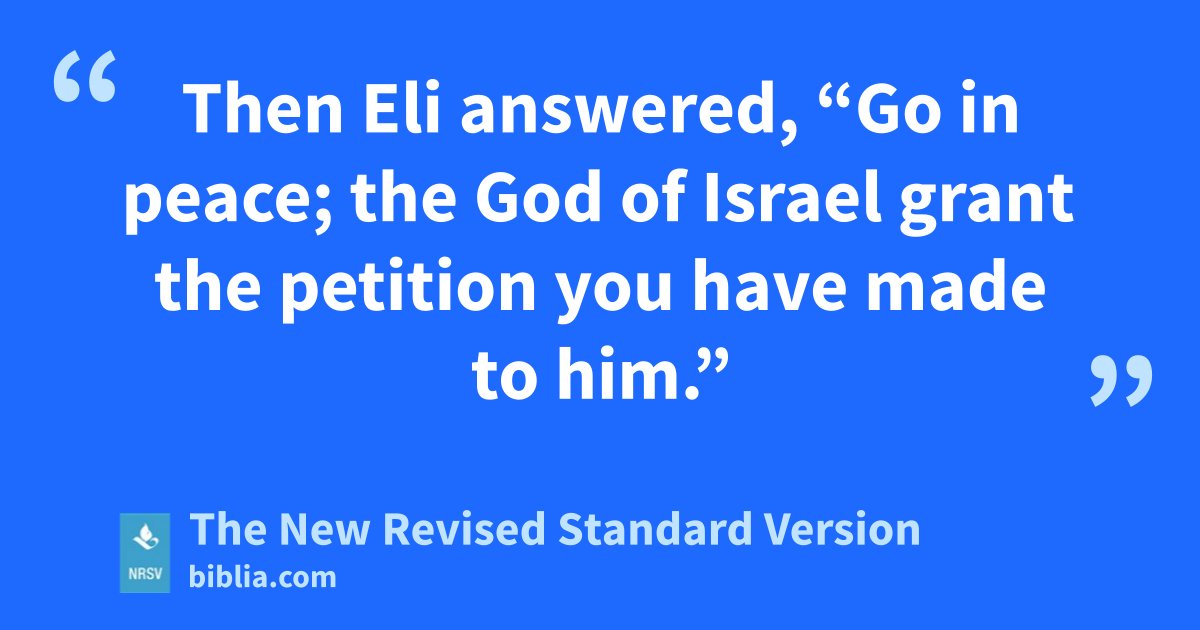 Then Eli answered, “Go in peace; the God of Israel grant the petition you have made to him.”