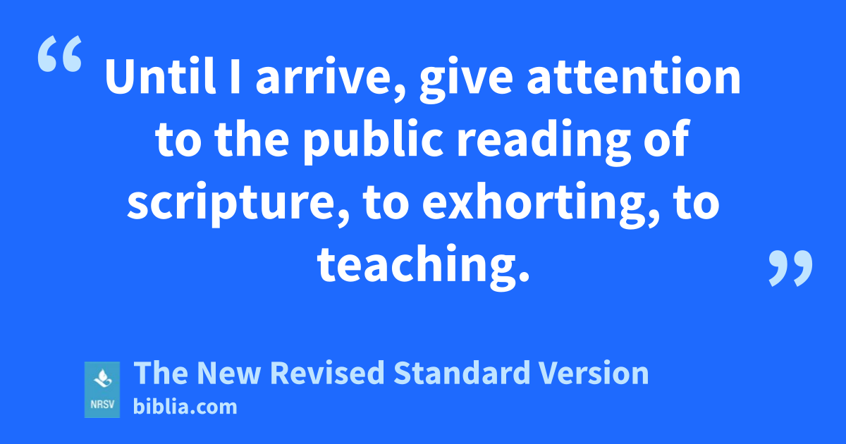 Until I arrive, give attention to the public reading of scripture, to exhorting, to teaching.