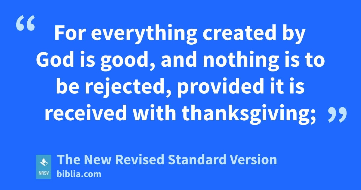 For everything created by God is good, and nothing is to be rejected, provided it is received with thanksgiving;