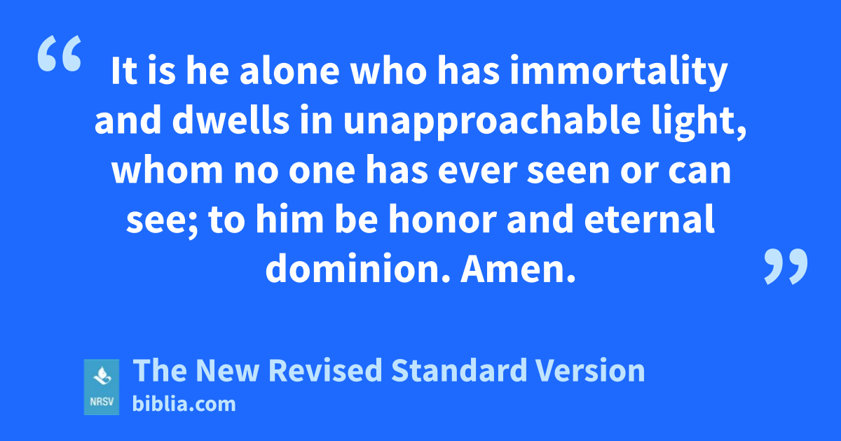 It is he alone who has immortality and dwells in unapproachable light, whom no one has ever seen or can see; to him be honor and eternal dominion. Amen.