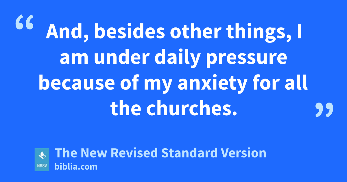 And, besides other things, I am under daily pressure because of my anxiety for all the churches.