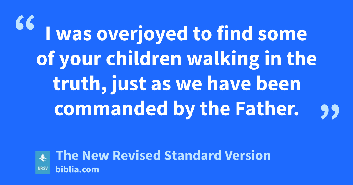 I was overjoyed to find some of your children walking in the truth, just as we have been commanded by the Father.