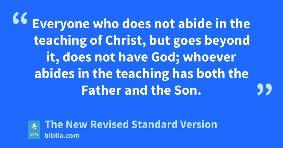 Everyone who does not abide in the teaching of Christ, but goes beyond it, does not have God; whoever abides in the teaching has both the Father and the Son.