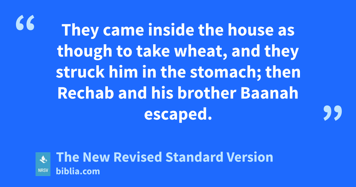 They came inside the house as though to take wheat, and they struck him in the stomach; then Rechab and his brother Baanah escaped.