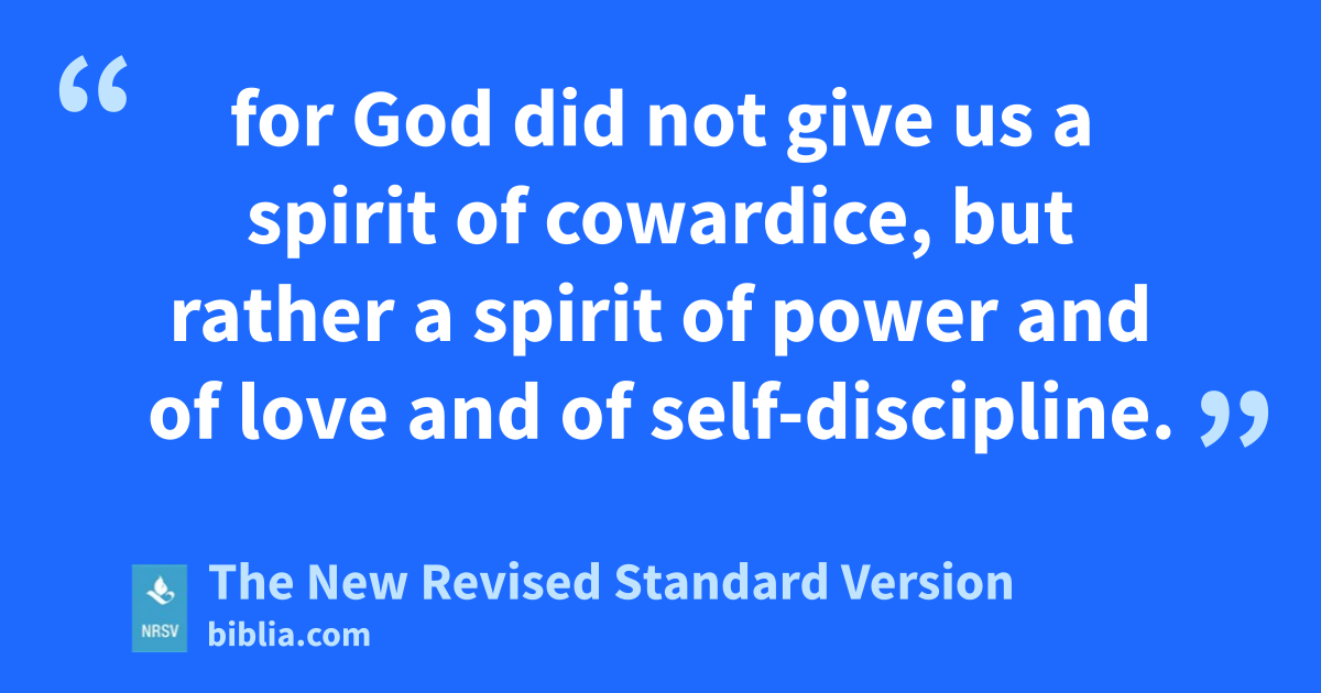 for God did not give us a spirit of cowardice, but rather a spirit of power and of love and of self-discipline.
