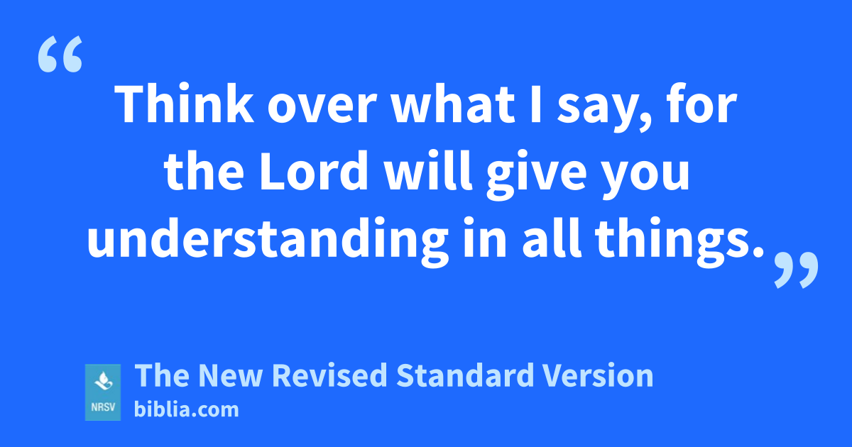 Think over what I say, for the Lord will give you understanding in all things.