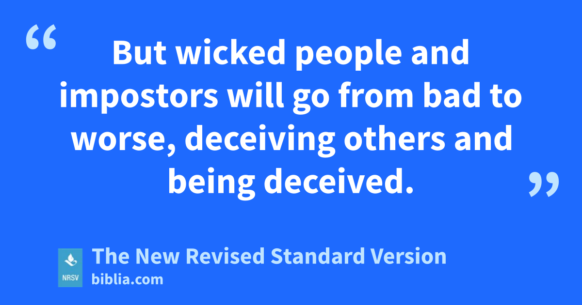 But wicked people and impostors will go from bad to worse, deceiving others and being deceived.