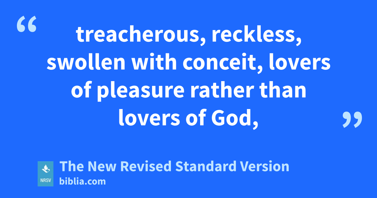 treacherous, reckless, swollen with conceit, lovers of pleasure rather than lovers of God,