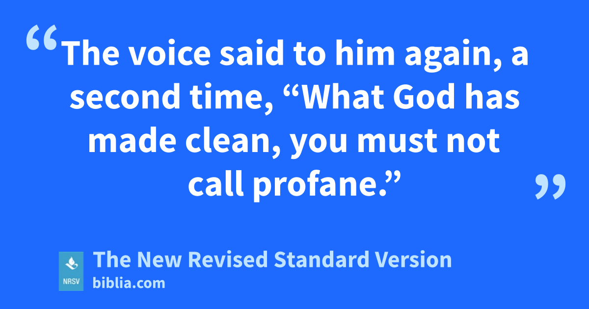 The voice said to him again, a second time, “What God has made clean, you must not call profane.”