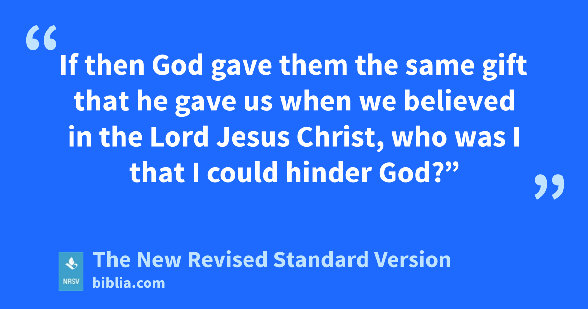 If then God gave them the same gift that he gave us when we believed in the Lord Jesus Christ, who was I that I could hinder God?”