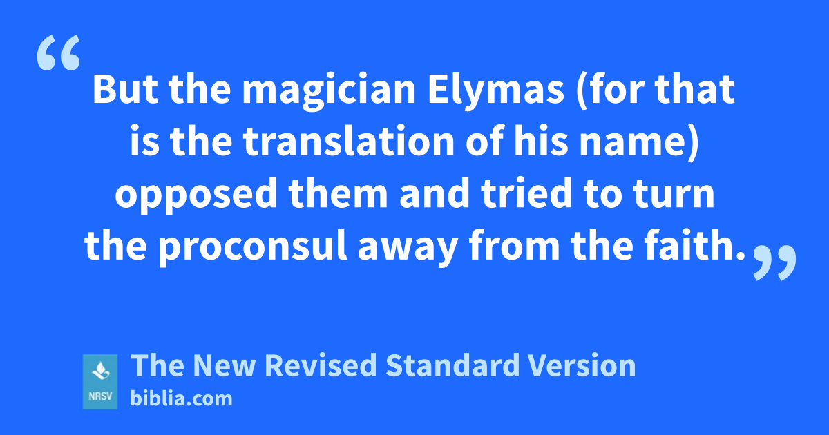 But the magician Elymas (for that is the translation of his name) opposed them and tried to turn the proconsul away from the faith.