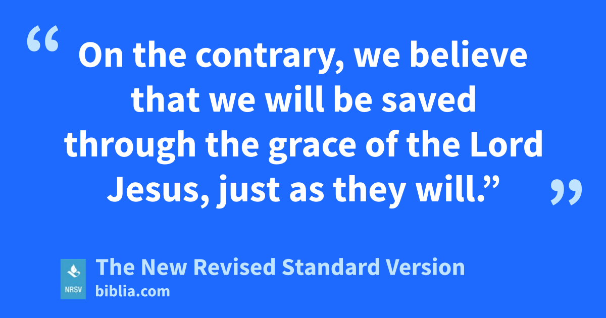 On the contrary, we believe that we will be saved through the grace of the Lord Jesus, just as they will.”