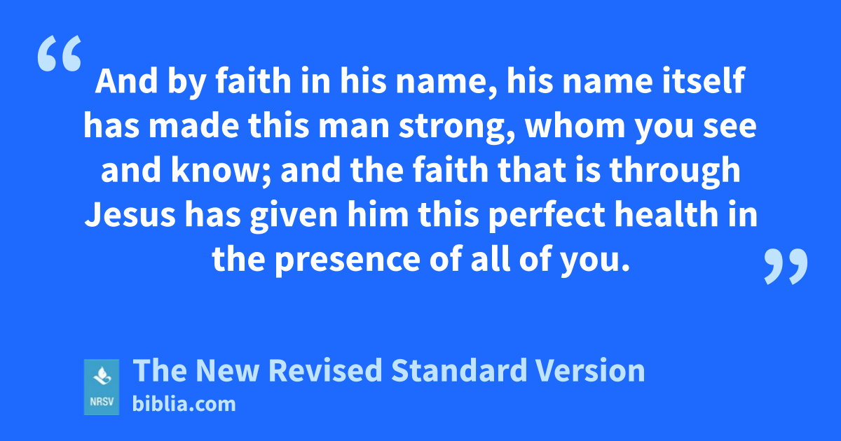 And by faith in his name, his name itself has made this man strong, whom you see and know; and the faith that is through Jesus has given him this perfect health in the presence of all of you.