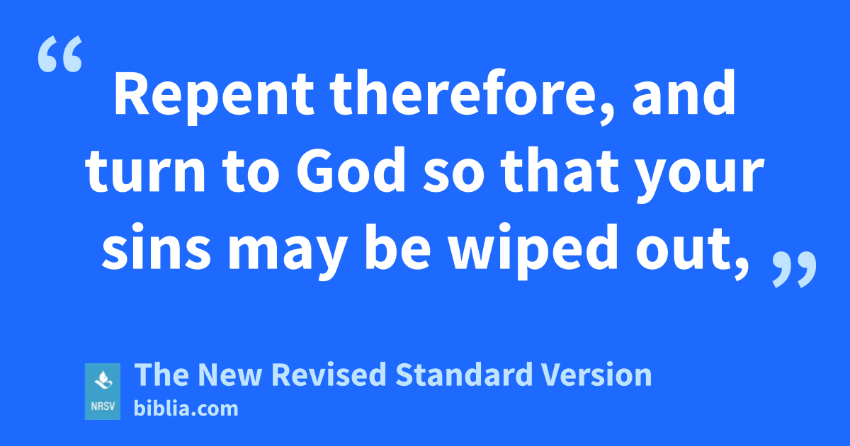Repent therefore, and turn to God so that your sins may be wiped out,