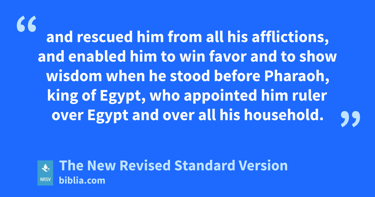 and rescued him from all his afflictions, and enabled him to win favor and to show wisdom when he stood before Pharaoh, king of Egypt, who appointed him ruler over Egypt and over all his household.