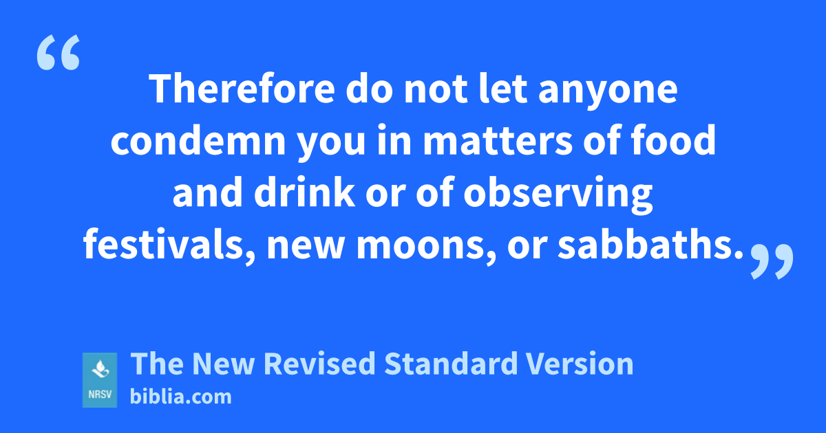 Therefore do not let anyone condemn you in matters of food and drink or of observing festivals, new moons, or sabbaths.