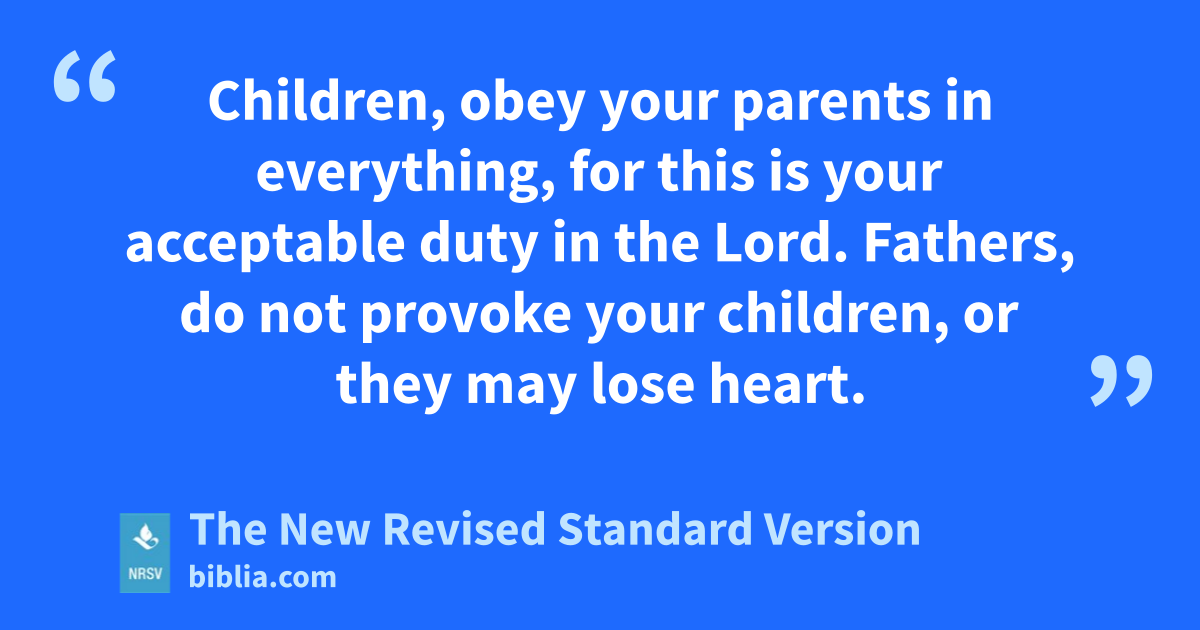 Children, obey your parents in everything, for this is your acceptable duty in the Lord. Fathers, do not provoke your children, or they may lose heart.