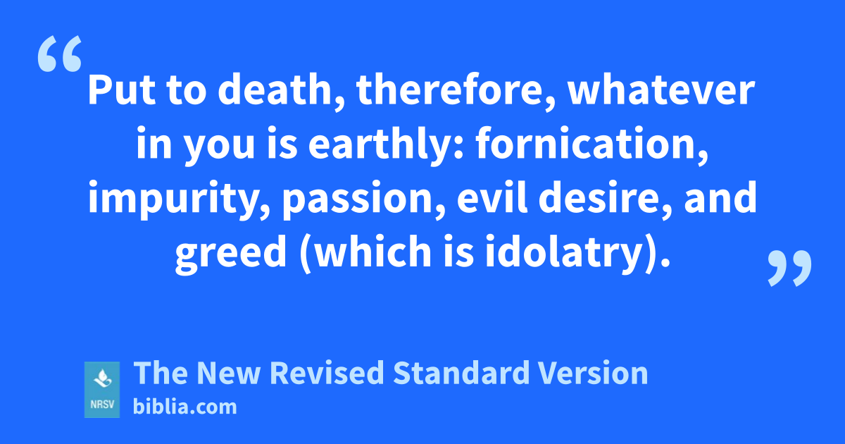 Put to death, therefore, whatever in you is earthly: fornication, impurity, passion, evil desire, and greed (which is idolatry).