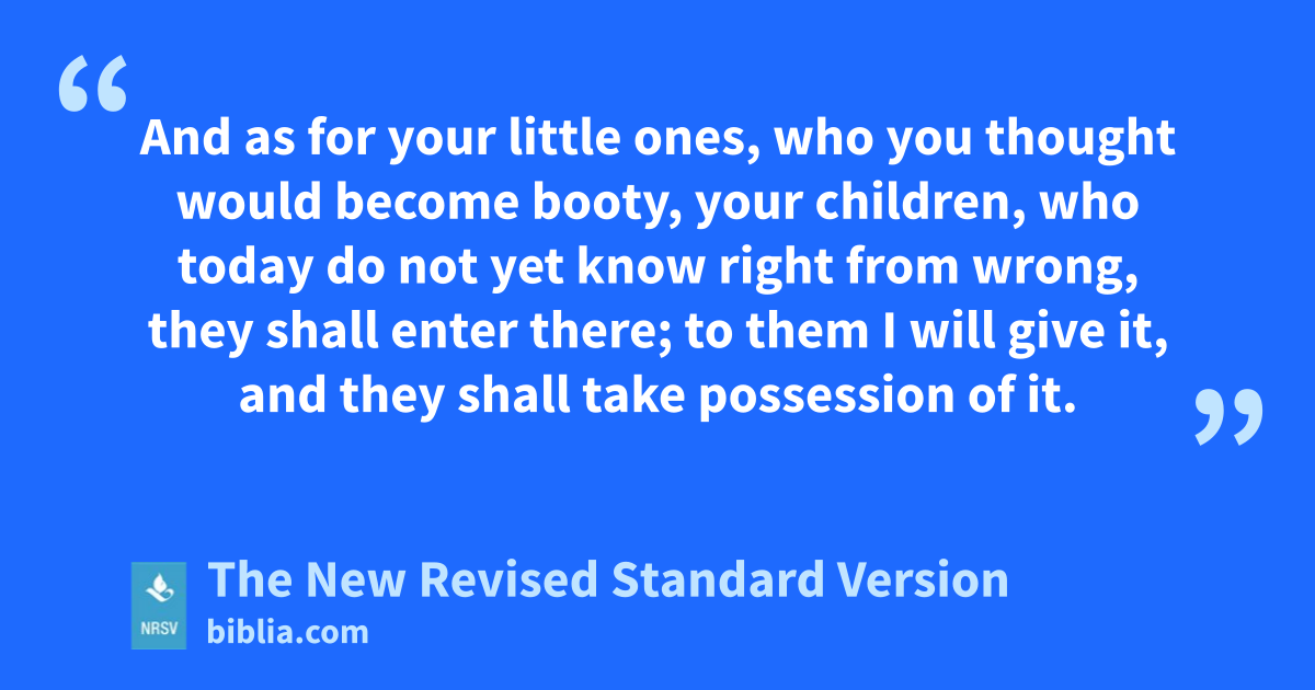 And as for your little ones, who you thought would become booty, your children, who today do not yet know right from wrong, they shall enter there; to them I will give it, and they shall take possession of it.