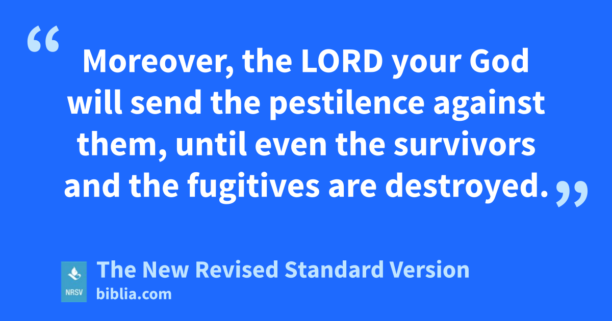 Moreover, the LORD your God will send the pestilence against them, until even the survivors and the fugitives are destroyed.