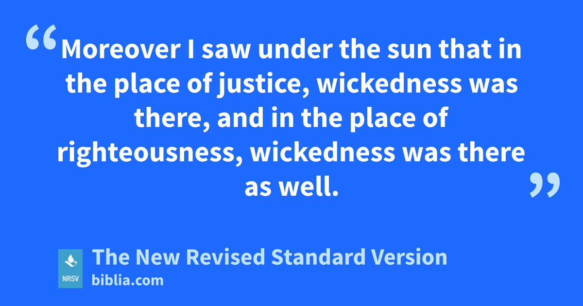 Moreover I saw under the sun that in the place of justice, wickedness was there, and in the place of righteousness, wickedness was there as well.
