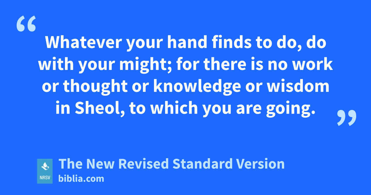 Whatever your hand finds to do, do with your might; for there is no work or thought or knowledge or wisdom in Sheol, to which you are going.