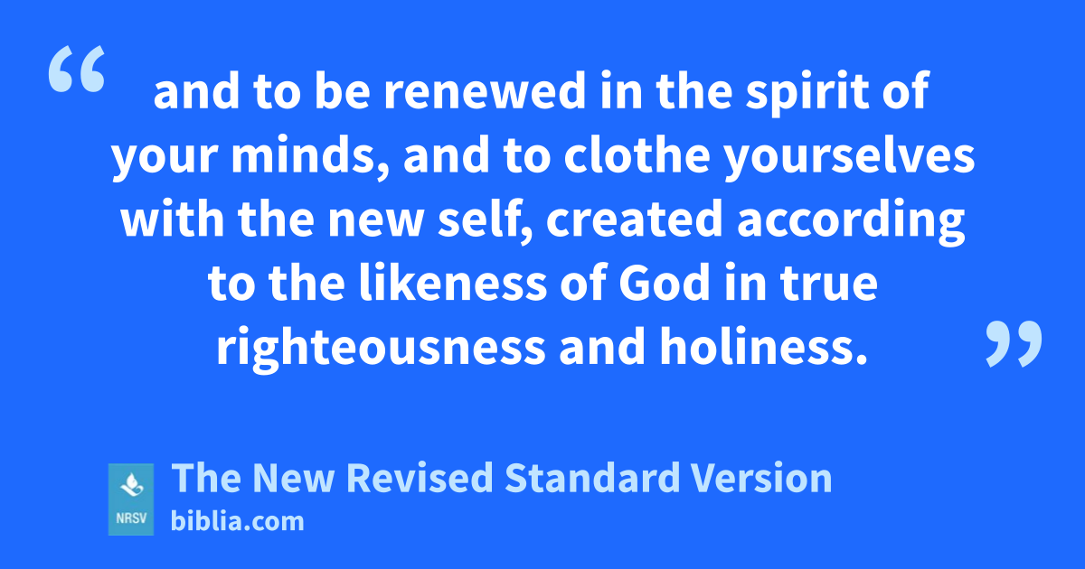 and to be renewed in the spirit of your minds, and to clothe yourselves with the new self, created according to the likeness of God in true righteousness and holiness.