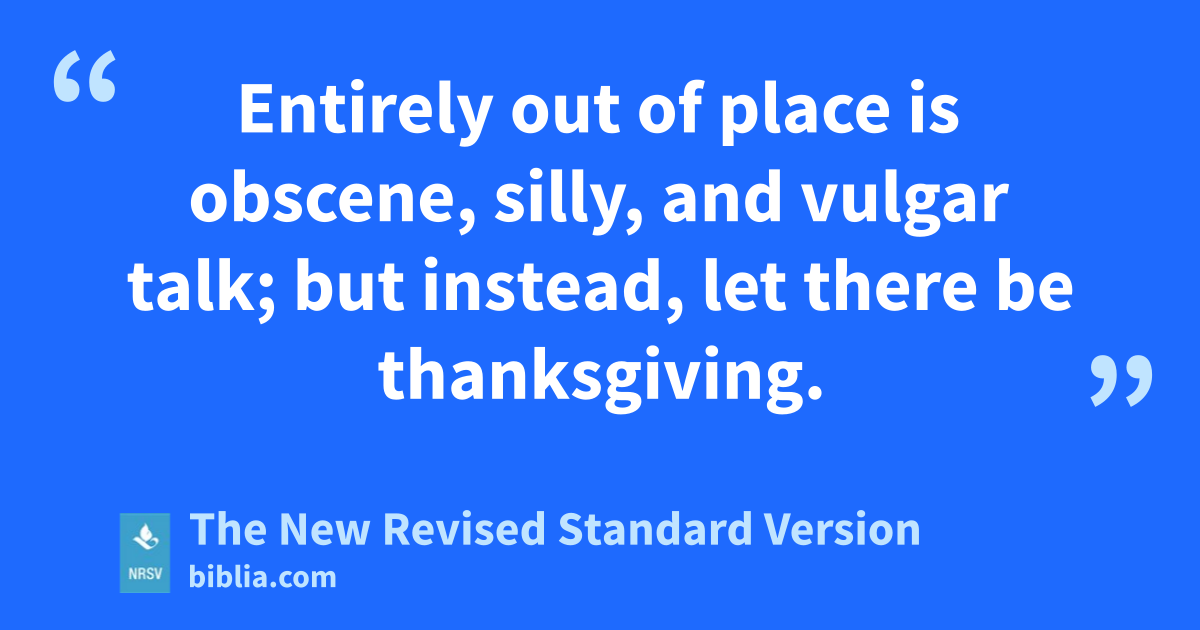 Entirely out of place is obscene, silly, and vulgar talk; but instead, let there be thanksgiving.