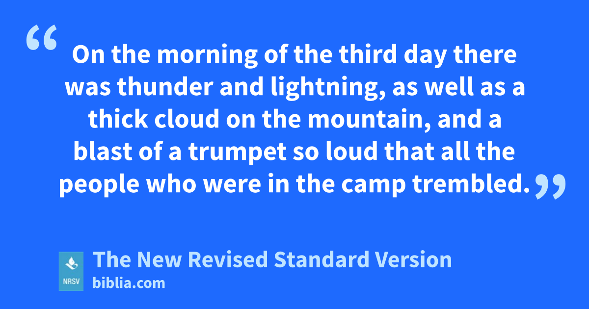 On the morning of the third day there was thunder and lightning, as well as a thick cloud on the mountain, and a blast of a trumpet so loud that all the people who were in the camp trembled.