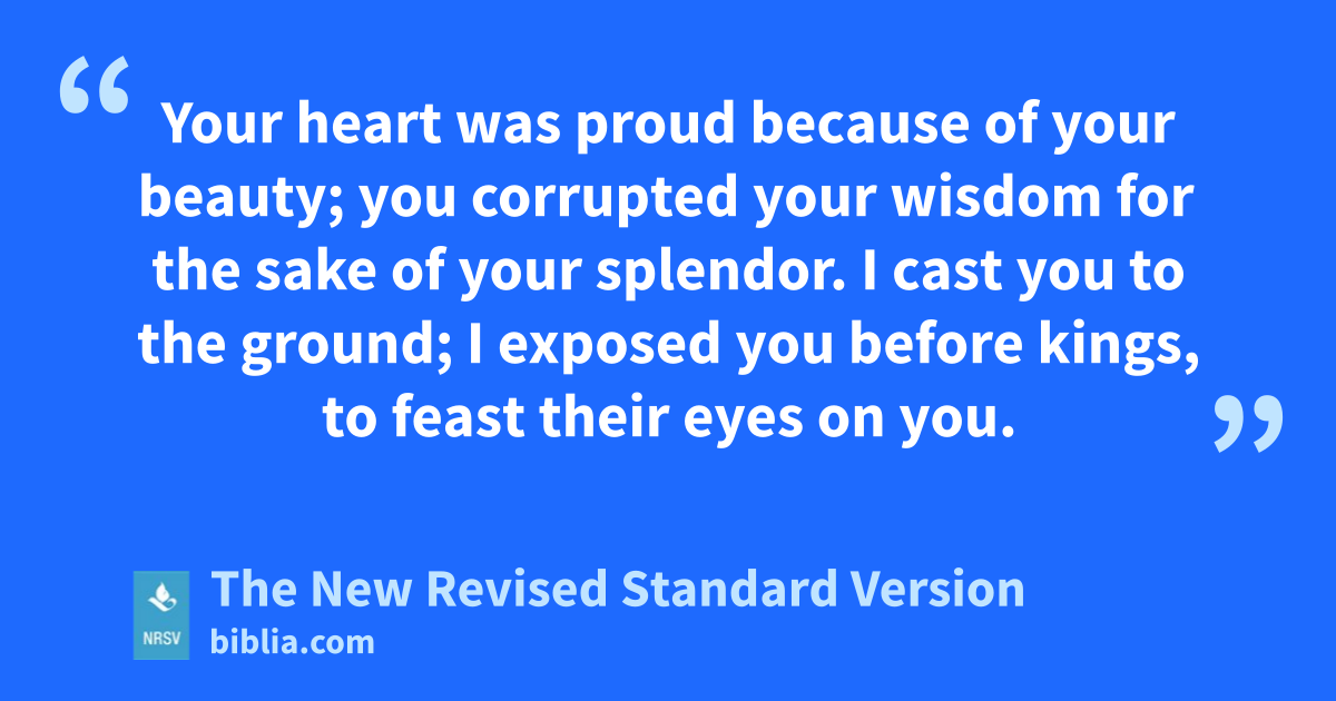 Your heart was proud because of your beauty; you corrupted your wisdom for the sake of your splendor. I cast you to the ground; I exposed you before kings, to feast their eyes on you.