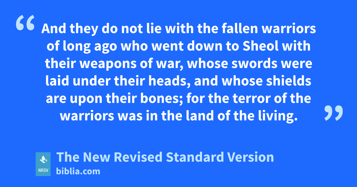 And they do not lie with the fallen warriors of long ago who went down to Sheol with their weapons of war, whose swords were laid under their heads, and whose shields are upon their bones; for the terror of the warriors was in the land of the living.