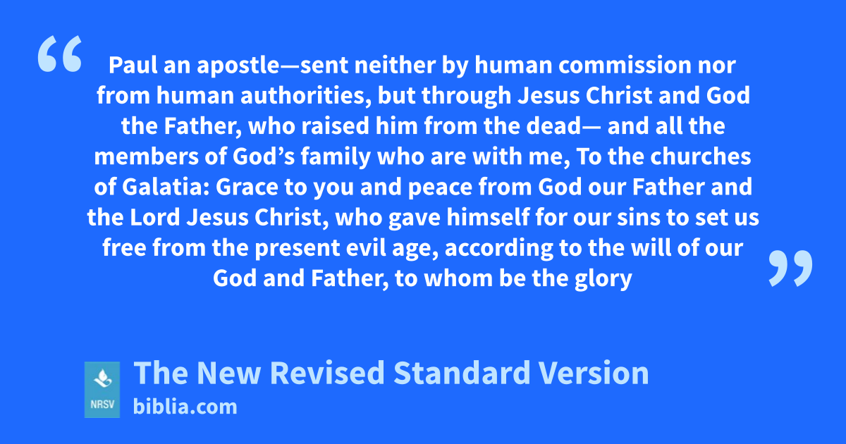 Paul an apostle—sent neither by human commission nor from human authorities, but through Jesus Christ and God the Father, who raised him from the dead— and all the members of God’s family who are with me, To the churches of Galatia: Grace to you and peace from God our Father and the Lord Jesus Christ, who gave himself for our sins to set us free from the present evil age, according to the will of our God and Father, to whom be the glory