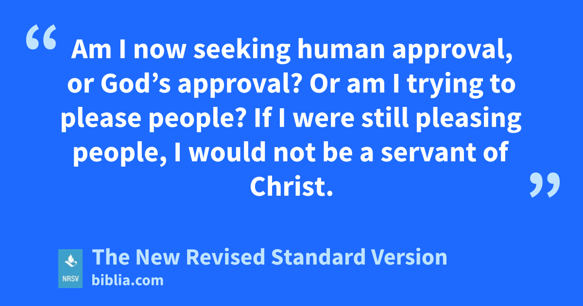 Am I now seeking human approval, or God’s approval? Or am I trying to please people? If I were still pleasing people, I would not be a servant of Christ.