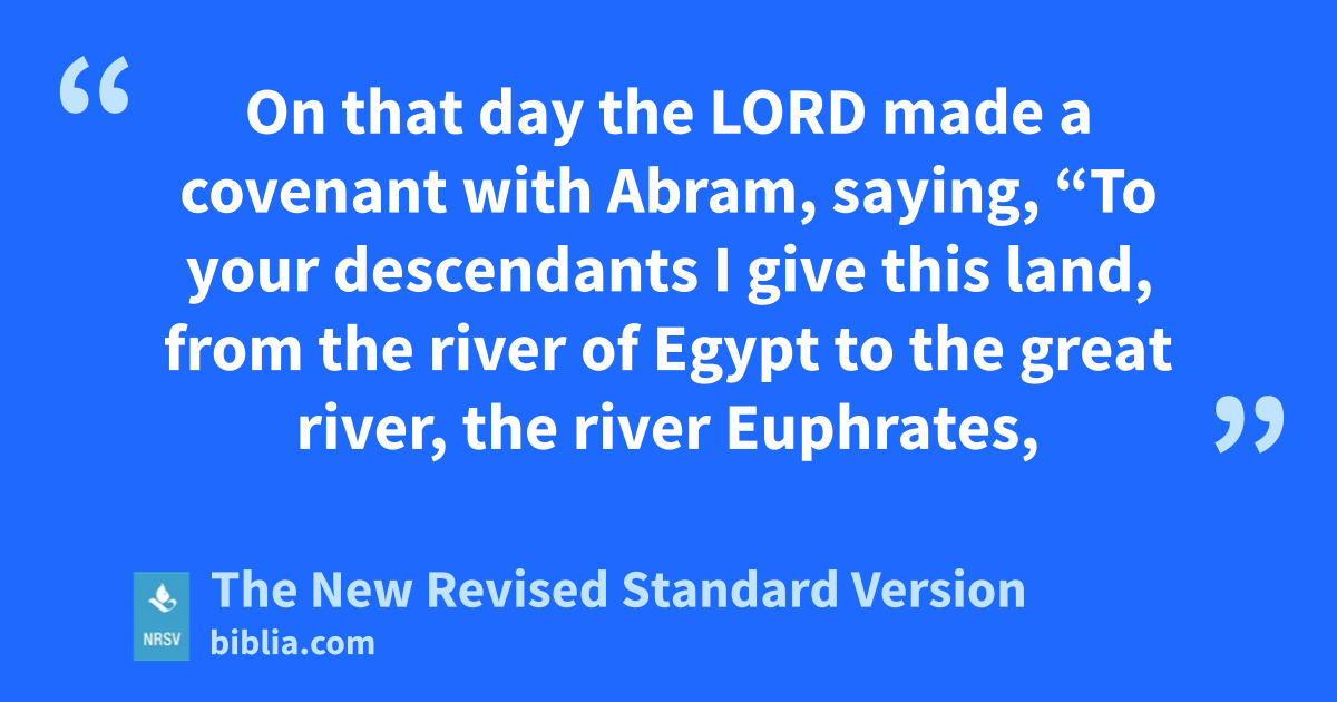 On that day the LORD made a covenant with Abram, saying, “To your descendants I give this land, from the river of Egypt to the great river, the river Euphrates,