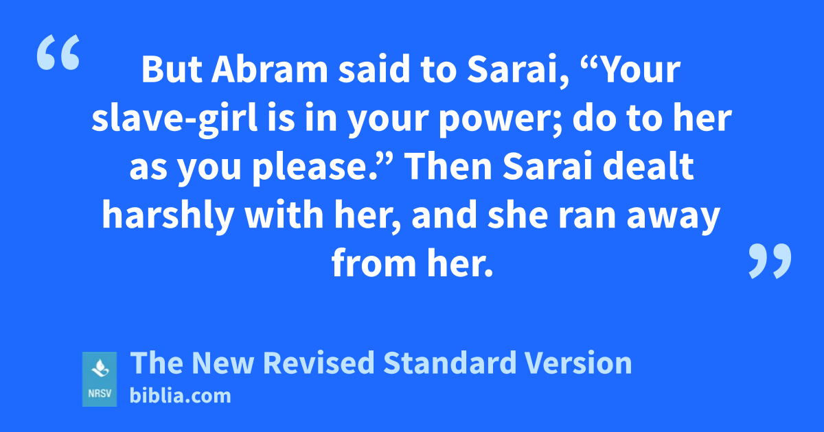 But Abram said to Sarai, “Your slave-girl is in your power; do to her as you please.” Then Sarai dealt harshly with her, and she ran away from her.