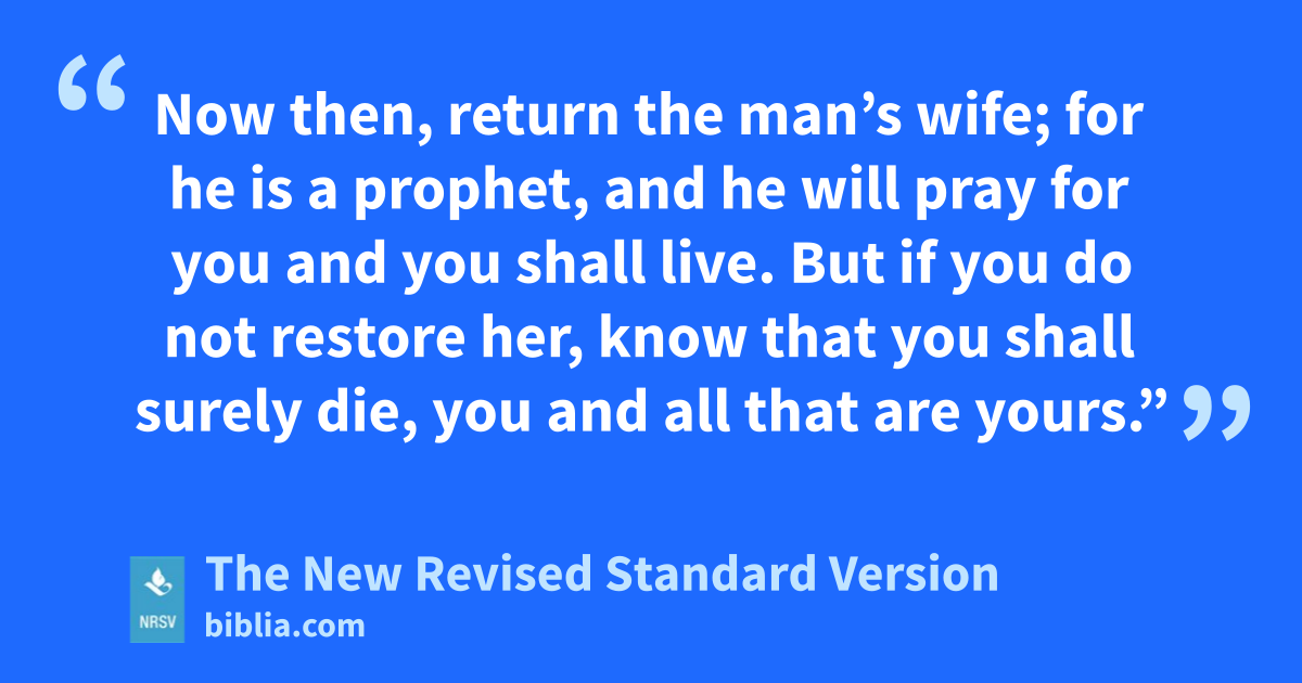 Now then, return the man’s wife; for he is a prophet, and he will pray for you and you shall live. But if you do not restore her, know that you shall surely die, you and all that are yours.”