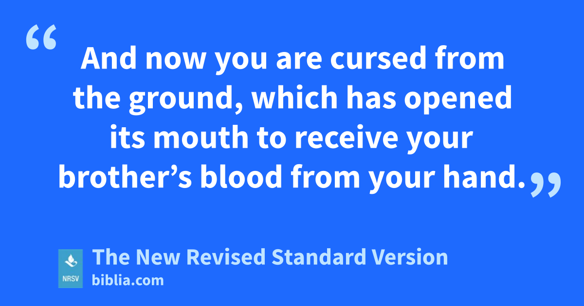 And now you are cursed from the ground, which has opened its mouth to receive your brother’s blood from your hand.