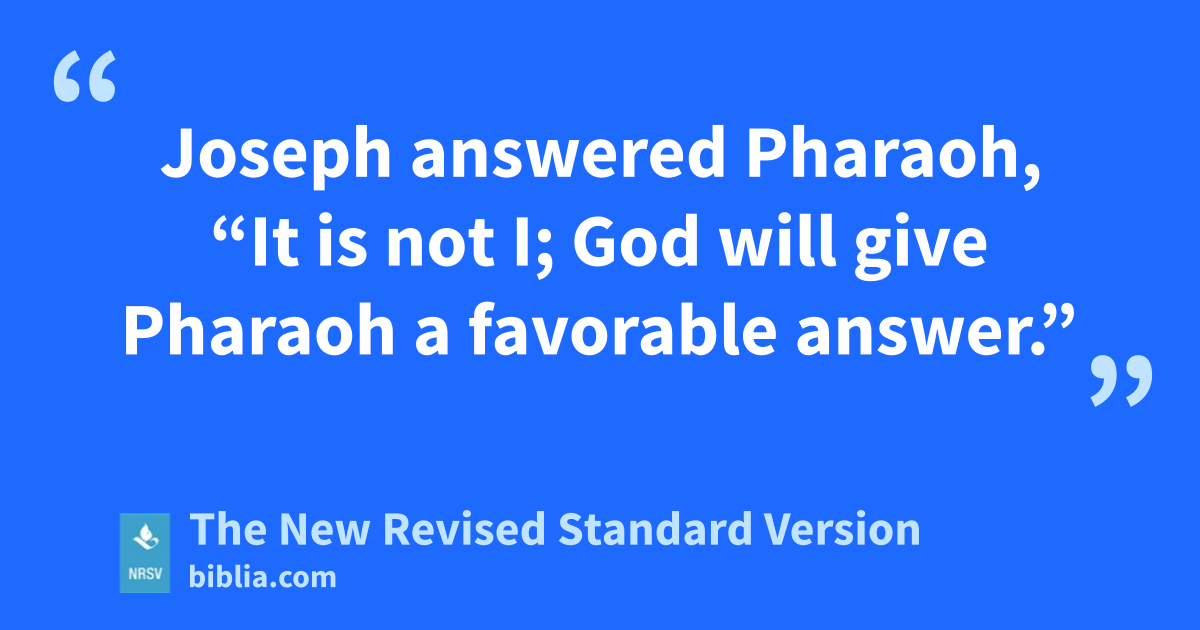 Joseph answered Pharaoh, “It is not I; God will give Pharaoh a favorable answer.”