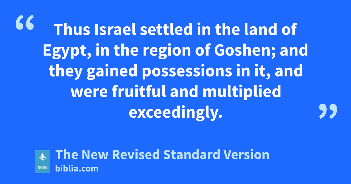Thus Israel settled in the land of Egypt, in the region of Goshen; and they gained possessions in it, and were fruitful and multiplied exceedingly.