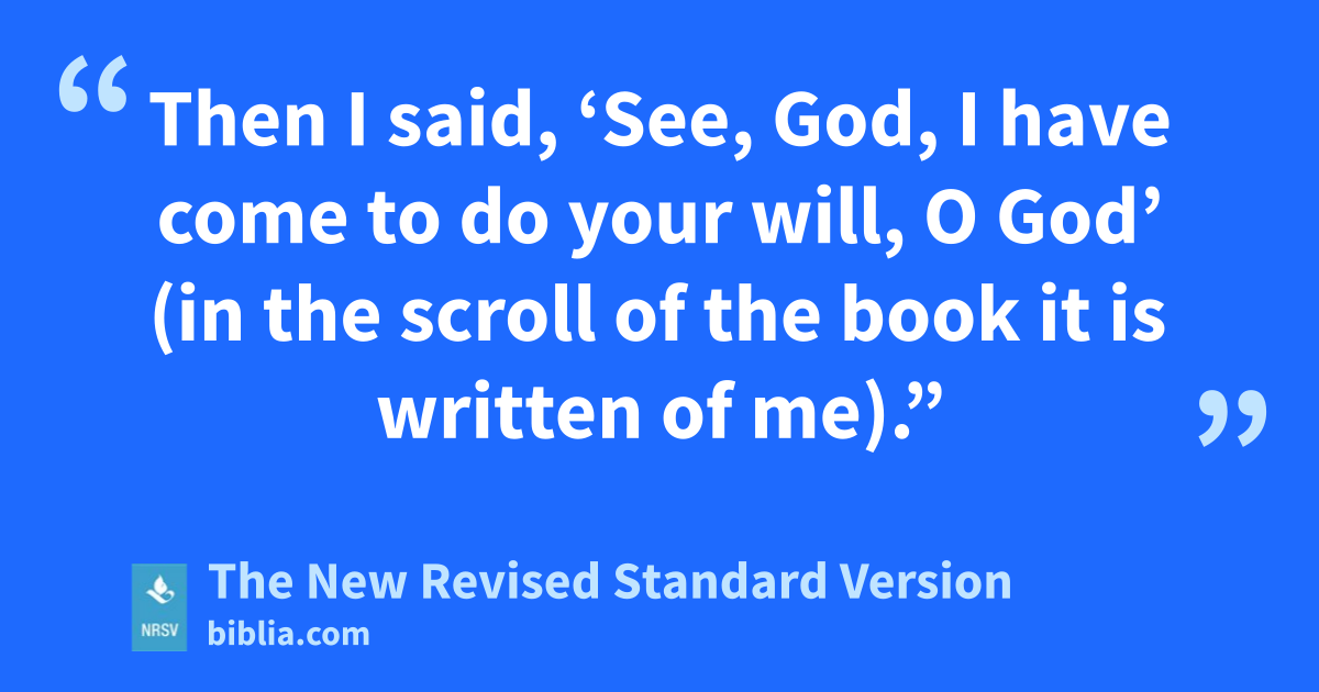 Then I said, ‘See, God, I have come to do your will, O God’ (in the scroll of the book it is written of me).”