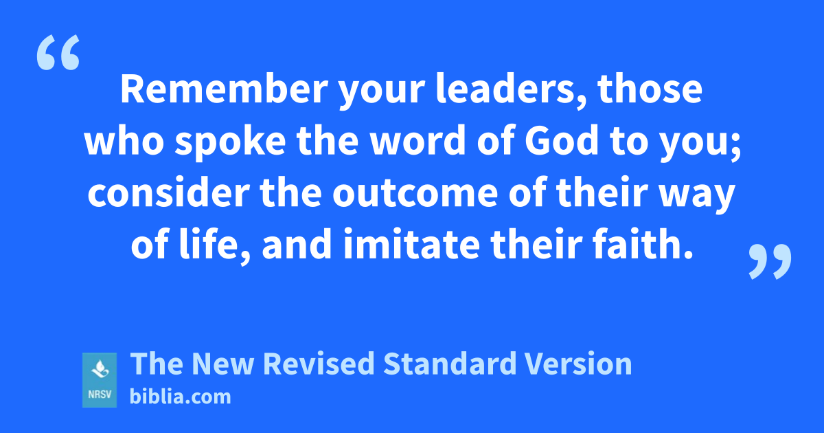 Remember your leaders, those who spoke the word of God to you; consider the outcome of their way of life, and imitate their faith.