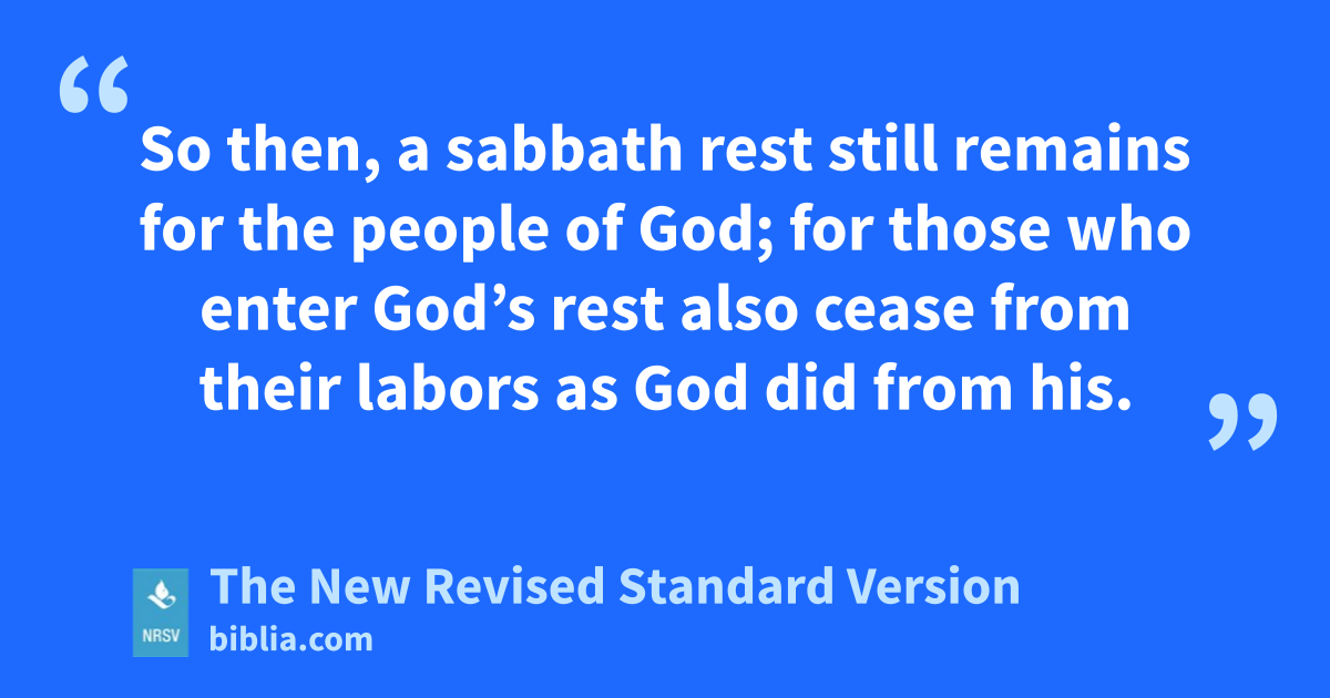 So then, a sabbath rest still remains for the people of God; for those who enter God’s rest also cease from their labors as God did from his.